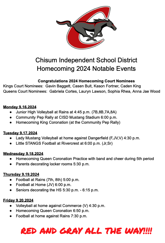 Homecoming Week Events
